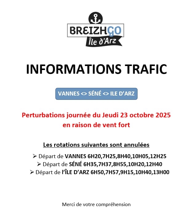 Breizh Go ile d’Arz : des rotations annulées jeudi 23 octobre