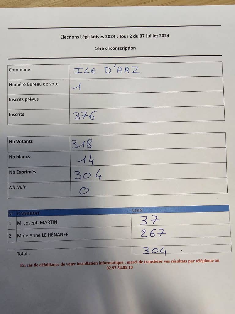 Résultat des élections Legislatives du 07 juillet – l’Ile d’Arz